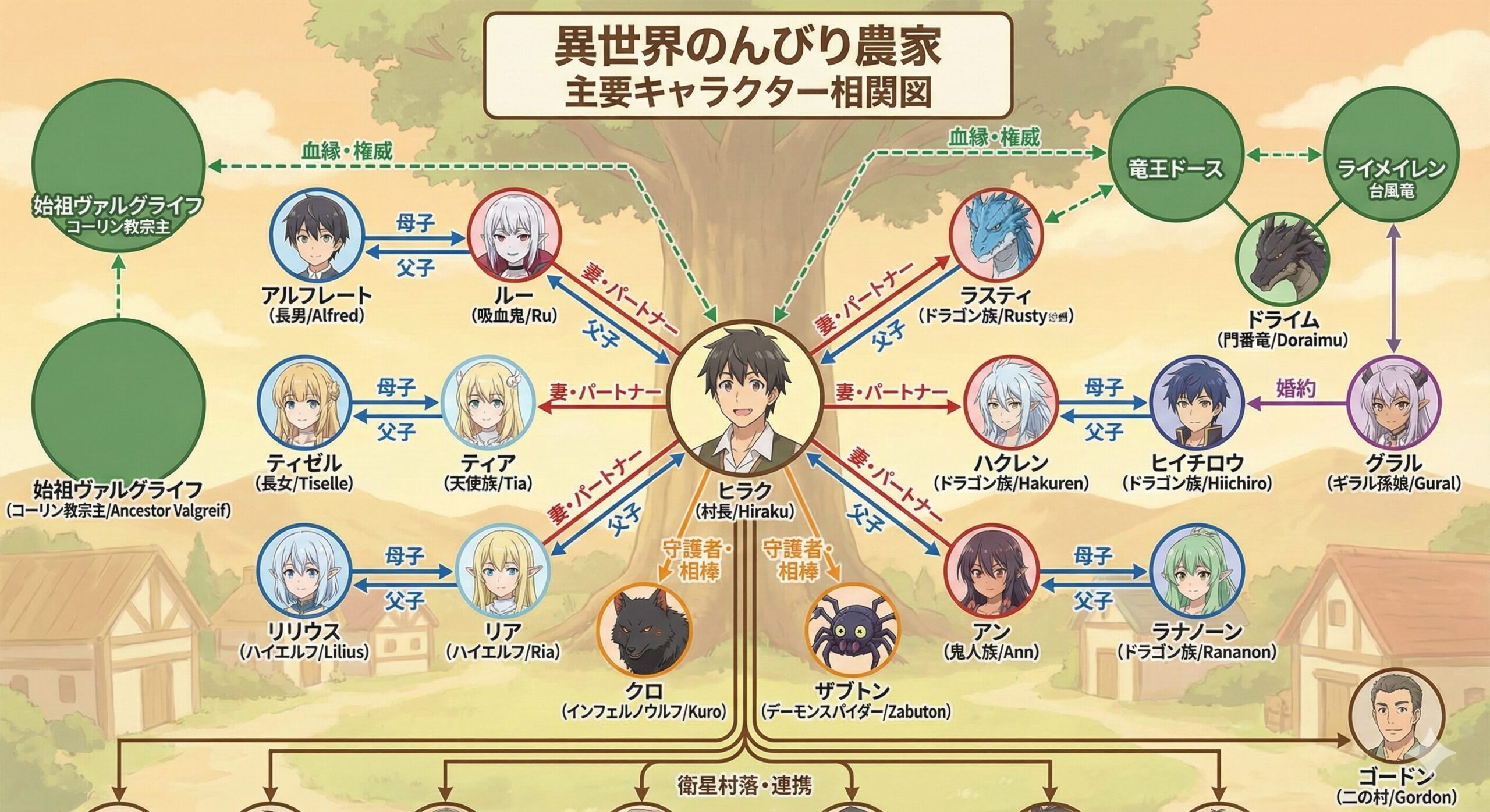 異世界のんびり農家を支配するドラゴンを含む相関図